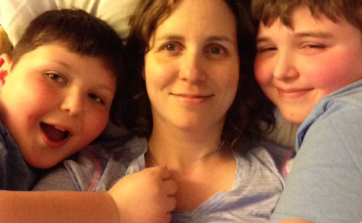 This is me enjoying one of those bittersweet cuddle moments with my boys that I never want to forget. They are letting go and I am letting them let go, because I know they need to.